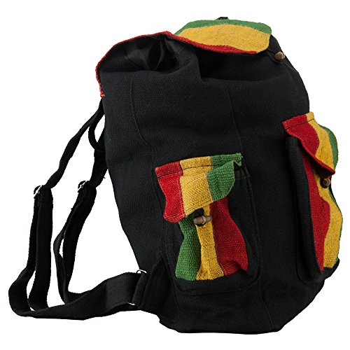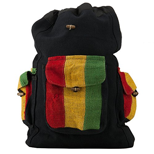 -. Brand : Kathmandu -. Color : Black -. Department : unisex-adult -. Feature : Made of 100% h.e.m.p. / Bag measures 17 inches deep, 11 inches wide and 5 inches thick with wood toggle closure. / Strap measures 1 1/4 inches wide. / Fully lined inside with black color with 3 pockets outside. / Thick and soft h.e.m.p material. -. ProductGroup : Apparel -. ProductTypeName : LAGE -. Title : Rasta Three Pocket h.e.m.p Backpack - Black RGY2