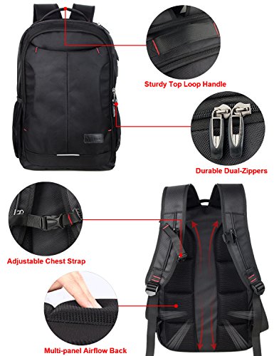 Constructed of water repellent and anti-scratch durable 1680D polyester with high density nylon lining; "S" Curve padded shoulder straps & back multi-panel airflow Ergonomic design offer maximum back support and comfort; Sturdy top loop handle for a secure hold when picking up or moving the backpack