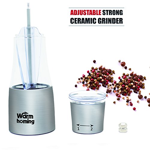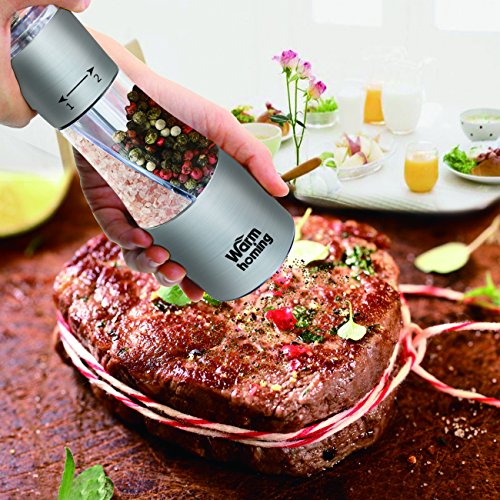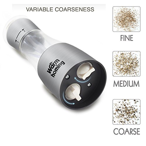 Pepper Grinder, Warmhoming 2 in 1 Salt and Pepper Grinder Set with Adjustable Coarseness