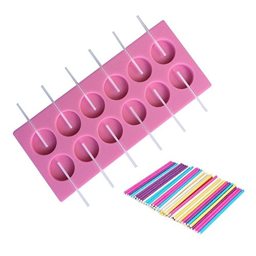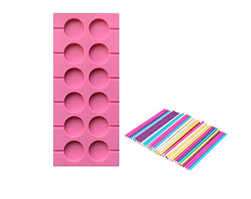 12-Cavity Round Silicone Lollypop Mold With 30pcs Colorful Lollipop Sticks,Candy Making Mold,Chocolate Mold, Soap Mold, Ice Cube Trays