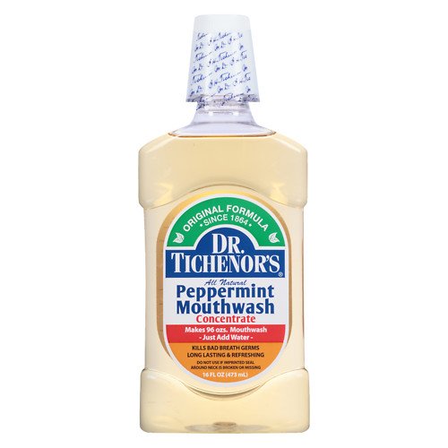 -. Binding : Health and Beauty -. Brand : Dr. Tichenors -. EAN : 0725410716265 -. Feature : Kills bad breath germs / Long lasting and refreshing / Concentrated Formula - Makes 96 oz. mouthwash - just add water / Simply dilute one part all-natural Dr. Tichenor's mouthwash concentrate with five parts water in your daily oral hygiene regimen. / Temporary, soothing relief of minor sore throat irritation -. IsAdultProduct : 0 -. Label : Dr. Tichenor's -. Manufacturer : Dr. Tichenor's -. MPN : SAJ7860091 -. PackageQuantity : 3 -. PartNumber : SAJ7860091 -. ProductGroup : Beauty -. ProductTypeName : HEALTH_PERSONAL_CARE -. Publisher : Dr. Tichenor's -. Studio : Dr. Tichenor's -. Title : Dr. Tichenors Dr. Tichenors Antiseptic Mouthwash Peppermint, Peppermint 16 oz (Pack of 3) -. UPC : 725410716265