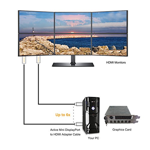 Active Mini DP to HDMI, CableCreation 6 Feet Mini DisplayPort (DP1.2) to HDMI Cable, DP to HDMI, 4K X 2K & 3D Audio/Video, Eyefinity Multi-Screen Support, 1.8 Meters/ White
