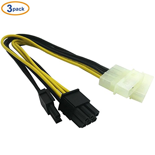 COMeap (3-Pack) 8 Pin (6+2) PCI Express to 2x Molex Power Cable 9-inch(23cm)
