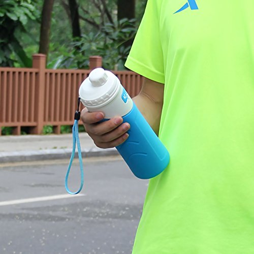 Kitdine insulated water bottle Outdoor Sports thermos bottle Silicone water bottle-500ML(Blue)