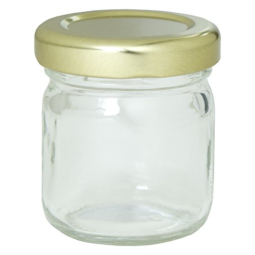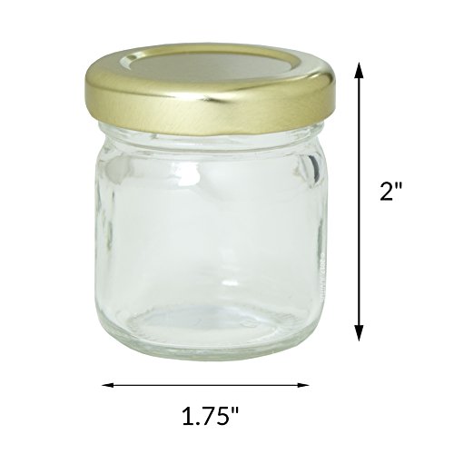Clear 1.25 oz Thick Wall Glass Jar with Gold Metal Lined Lid (6 pack) Food Grade, Lead Free, Made in USA for Jams and Jellies, Honey, Wedding and Shower Gifts,...