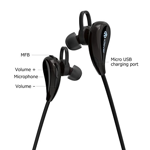 [Perfect for Exerise]iClever Durable Bluetooth Headphones, Bluetooth V4.1, (Pairing Faster and More Stable) Wireless Stereo Earphones with Microphone, Sweat-resistant for Running