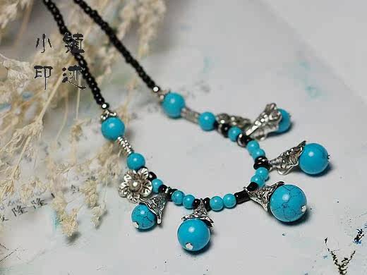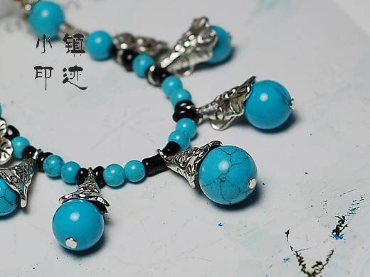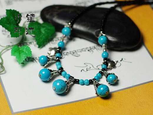 | Five morning glory necklace Material: turquoise beads, Tibetan silver Specifications: morning glory is about 2cm, 24.5cm long necklace fold Description: The dark spots on the turquoise is normal, not man-made damaged or defective products. Because it is random materials, each above the lines are different, and some have spots, some do not, have their own characteristics. Read carefully before you buy! |