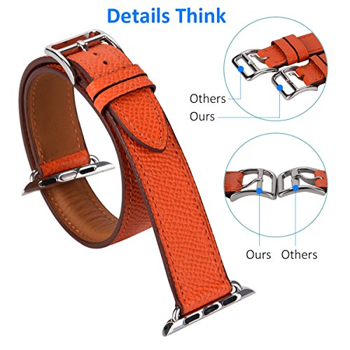 -. Feature : Compatibility: Top cowhide leather band with new stainless steel clasp, perfectly fits for ALL 42mm Models (Apple Watch & Sport & Edition Version ) / Easy Installation: Just slide into the apple watch slots, smoothly; Secure: 100% twice tested by real Apple Watch for adapters; Durable: Special gluing process for through holes of clasp and adapters / Superior Craftsmanship: Expertised craftsman made leather band with four times handmade painting edge process, to ensure long time service / High Quality: Top-grain leather with distinctive texture in bright color, comfortable wearing / Precise cut 5 holes with each 0.7mm distance; Fit 165-195mm wrists; Life time warranty on all hardware