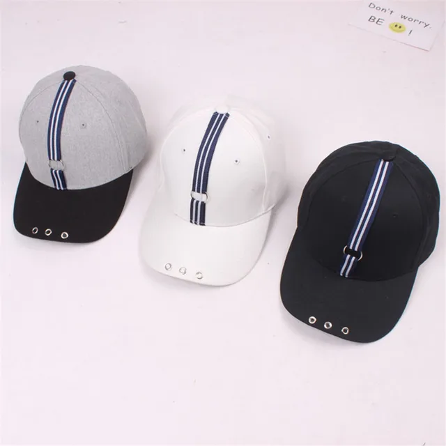 | [해외]패션 2017 핫 스타일 철 반지 스트라이프 모자 조절 야구 unipue 스타일 남여 |