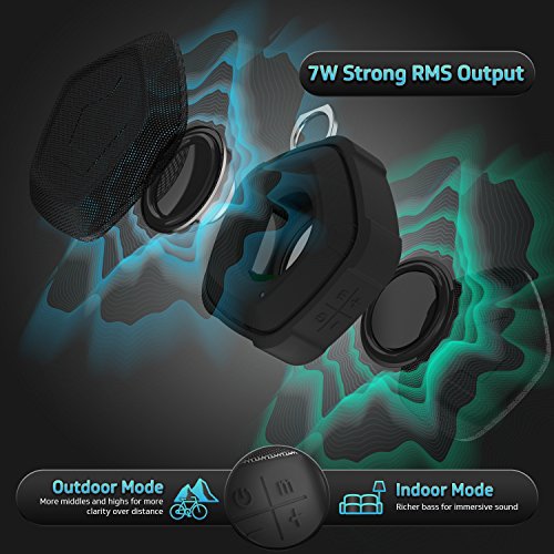 7W Strong RMS Output: Seamless streaming crystal clear sound from your digital devices. You can choose "Indoor" or "Outdoor" mode. Indoor mode will have richer bass while outdoor mode will have more middles and highs for more clarity over the distance.