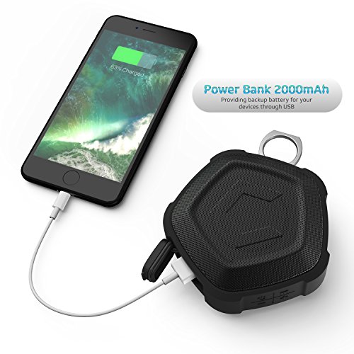 More than just a wireless speaker: It is also a power bank(2000mah) which can charge your other devices. This battery supports up to 6 hrs playing time.