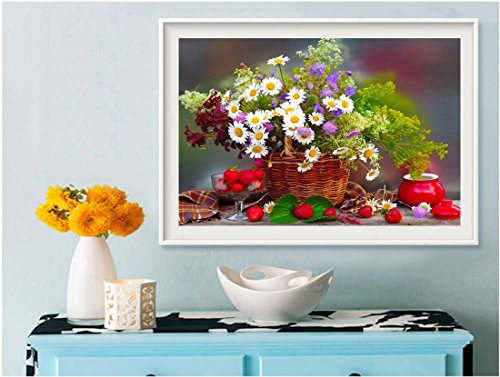 21secret 5D Diamond Diy Painting Full Round Drill Handmade White Chrysanthemum Flower in Basket Cross Stitch Home Decor Embroidery Kit