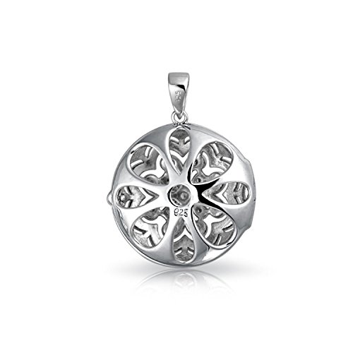 A stunning flower locket in a Vintage Style design. This .925 Sterling Silver locket features a pave Cubic Zirconia floral design. A locket with delicate filigree, this piece will work with any outfit for a special occasion. A great Christmas, Birthday or Mothers Day gift, this rounded locket is timeless but fashionable enough to be worn for day or night. 18 Inch Rolo Chain Included.