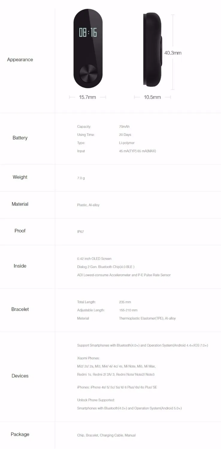 Model:MI band 2