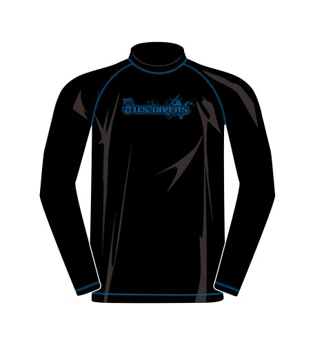U.S. Divers Kid's Rashguard, Black/Sky Blue, 6