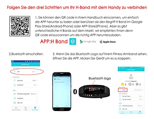 【Herzfrequenz】Tragen Sie bitte das Armband fest auf Ihrem Handgelenk, klicken Sie auf Herzfrequenz, es wird ihre Herzfrequenz nach einer Sekunde anfangen zu messen,warten sie bitte. Danach wird das Testergebnis angezeigt, nach ca 60 Sekunden wird der Bildschirm dunkel, der Test ist beendet. Pass Auf: Es zahlt die Herzfrequenz nicht jede Sekunde oder Minuten, man muss um die Herzfrequenz Funition klicken um es zu messen.