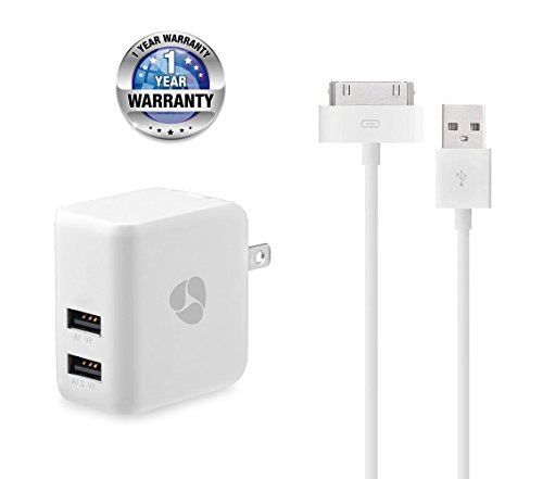 SNX(TM) 3.1A Dual Port High Speed USB Wall Charger Power Adapter with Extra Long 30 Pin Charging Cable Power Cord for iPhone 4s,iPod Touch 3/4, iPad 2/3