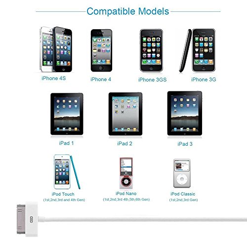 Compatible with iphone 3, 3S, 4, 4S & ipad 1, 2, 3 Older version
