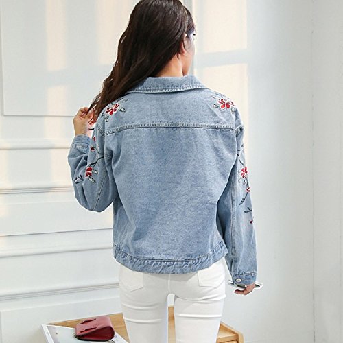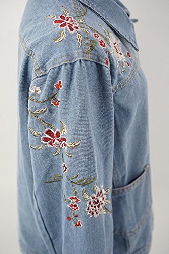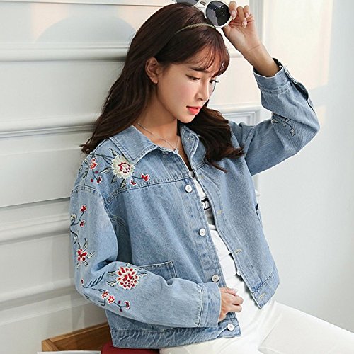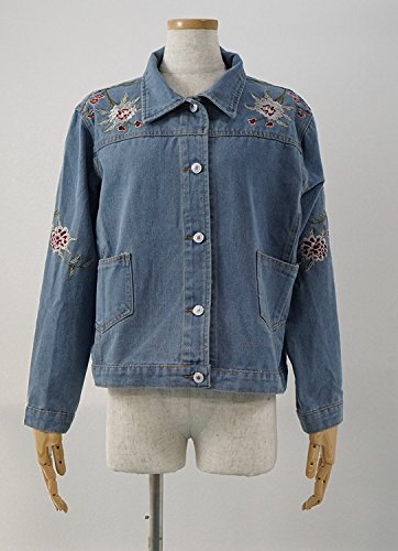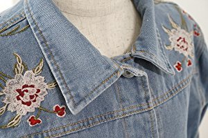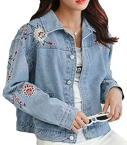 -. Title : (sleeping sheep) レディース 花 刺繍 ショート丈 デニム ジャケット ブルゾン Gジャン S M L ゆったり アウター ウォッシュ加工 フラワー
