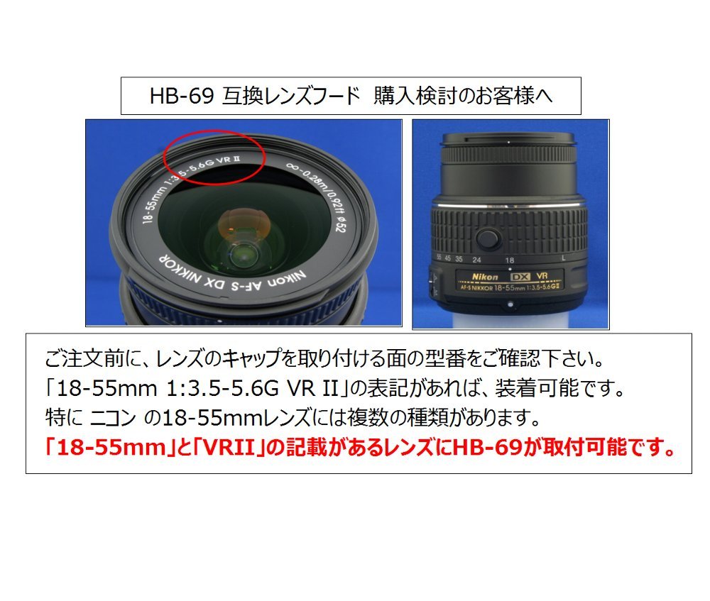 Nikon Nikon bayonet type lens hood HB-69 is a compatible item.