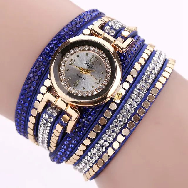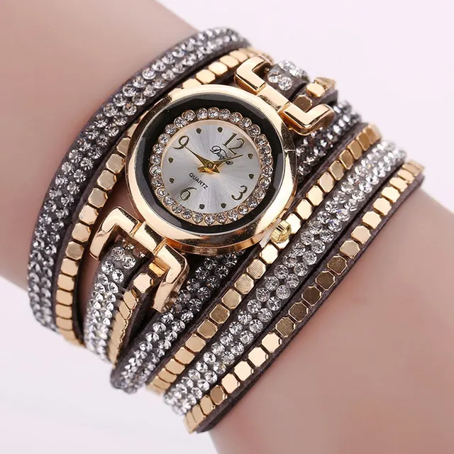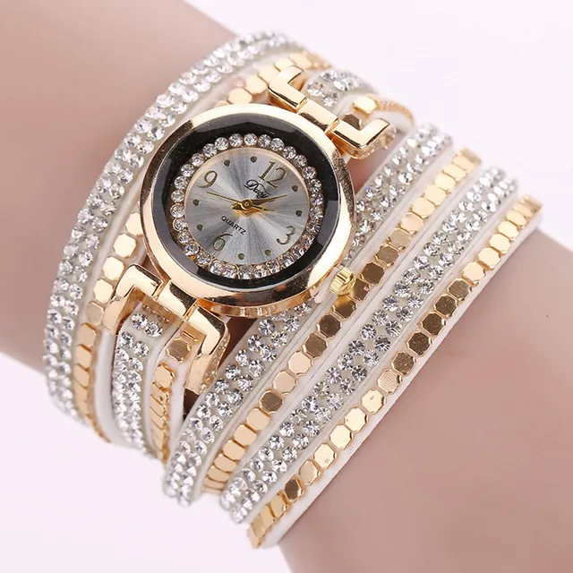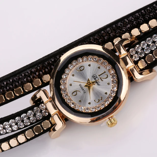 | [해외] Duoya 브랜드 패션 가죽 럭셔리 여성 크리스탈 손목 시계 여성 팔찌 시계 석영 골드 라인 석 시계 |