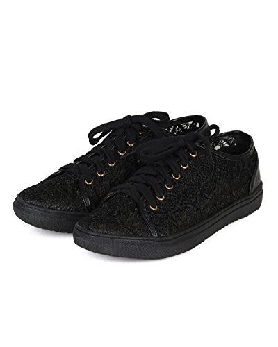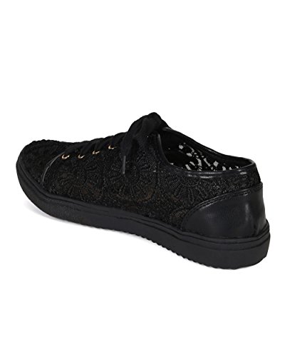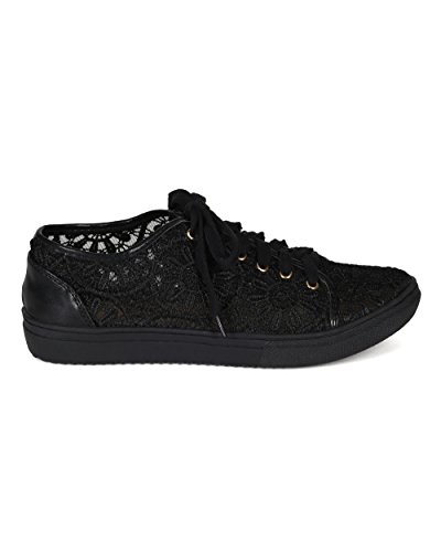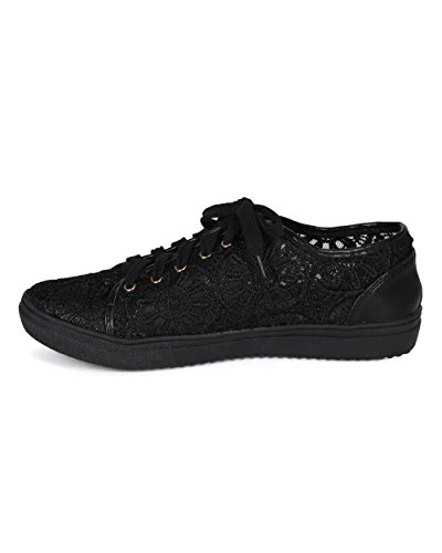 Nature Breeze CA78 Women Mix Media Lace Mesh Lace Up Sneaker - Black