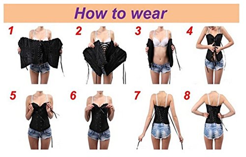 Binding : Apparel Product Description Perfect for wearing under an outfit as a shapewear corset or showing it off for some party fun bustier costume. The Satin Corset waist training corset shaper makes for a fabulous accessory, whether you're looking to purchase a fashion corset, cosplay corset, or simply trying to spice up your style. Features: 2 steel bonings at Front,10 plastic bones,Hand-washing only Item length(about): front 14.5inch(the longest),back 12inch Hook-And-Eye closures for precision fit Lace outside lining make you elegnant,Rhinestone with beautiful Sequin makes you sunshine and bling bling,lace criss cross adjustable lacing Strapless,Overbust,Cotton Inner Lining,Firm Compression You can wear Zhitunemi waist trainer at anytime you're going to be active. Take it to the gym or for a run outside and let it add impact to your healthy lifestyle routine. Corsets must be worn-in gently, if you tighten them up too much too quickly it can damage the corset. When you first put your corset on pull the lacing so it fits comfortably and snug but not too tight, after a while you should feel that the material has stretched slightly/your body has got used to the fit, so you will be able to tighten some more, this could happen a few times until you have it at its tightest fit. What's more,there has many whole set of corsets with beautiful mini skirt and mini dress for you to dress directly,which can waste more times and let us move forward to fashion world. 0