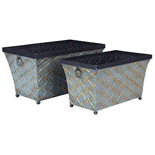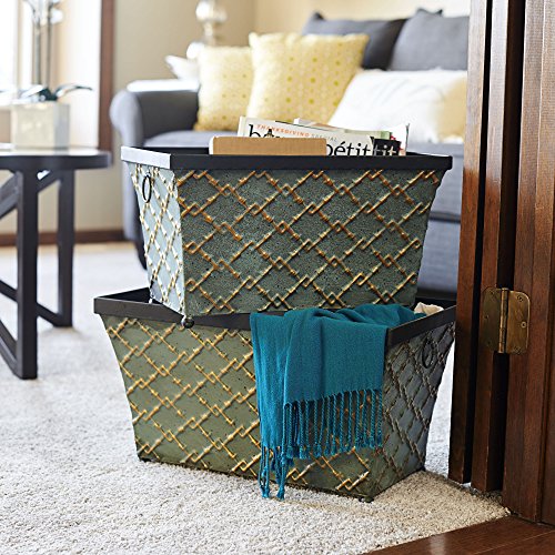 Household Essentials Vintage Metal Container Storage Decor, 2 Pc Set, Teal / Gold Link