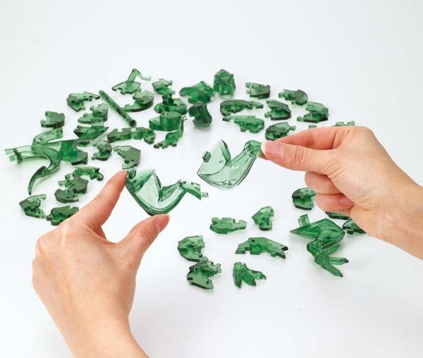 透明ピースを組み上げる立体ジグソーパズル。