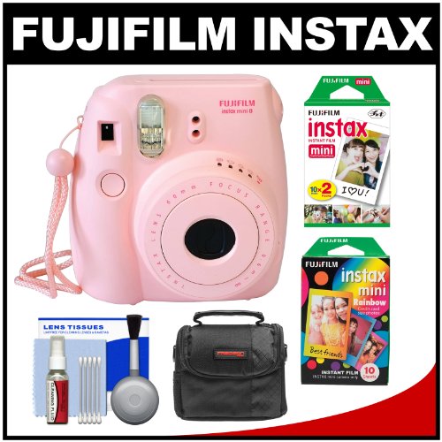 The Fujifilm Instax Mini 8 Instant Film Camera is simple to use and produces instant credit card size photos. Simply press the button, adjust the dial, and shoot to obtain pictures instantly. It automatically determines the best brightness for taking a picture, and also allows you to take pictures with a softer impression with high-key mode. Requires Fujifilm INSTAX mini film (sold separately).