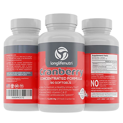 ✔ PREMIUM HIGHEST QUALITY, POTENCY & PURITY CRANBERRY: LongLifeNutri Cranberry Complex has high potency levels, crucial to support a healthy urinary tract. Our product pass through researches to verify procedure for you get the safest and purest product. NonGMO and Gluten Free. 100% Pure Ingredients. MADE IN USA. SOFTGEL. Our products are made according to strict GMP standards. We believe in providing just the right amount of each ingredient - no more, no less.