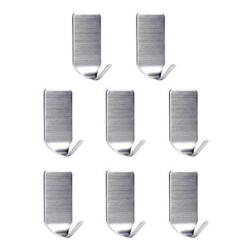 Adhesive Hooks,UltraStrong 3M StainlessSteel Waterproof hooks (Set of 8)-Light Duty(2.2lb) ,use for Coat Towel Keys Bags,Home Kitchen Bathroom