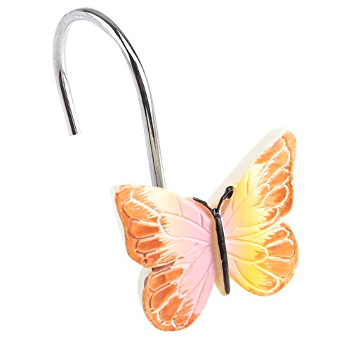 AGPtek 12PCS Home Fashions Butterfly Anti Rust Decorative Resin Hooks for Bathroom Shower Curtain ,Bedroom,Living room Curtain