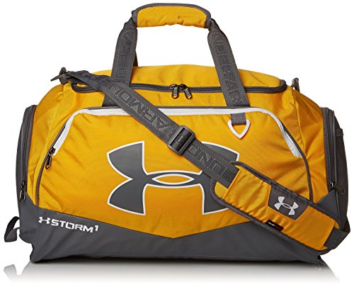 -. Brand : Under Armour -. Department : unisex-adult (lage only) -. Feature : Medium duffle bag featuring UA Storm treated fabric for ultimate protection in all conditions / Volume: 60.6 L, Dimensions: 13" x 25" x 11" / Fabric: 100% Polyester / Constructed of 600D Polyester with Durable Water Repellant (DWR) finish to repel snow and rain / Keeps your gear and valuables dry with abrasion-resistant Polyurethane bottom panel -. ProductGroup : Apparel -. ProductTypeName : LAGE -. Title : Under Armour Undeniable II Storm Gym Duffel Bag - Medium