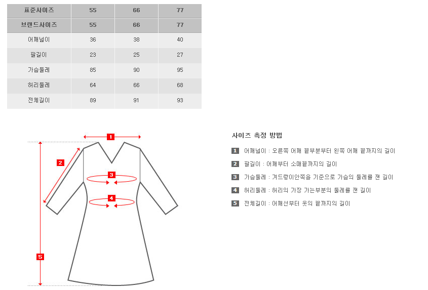 원피스 사이즈 (㎝)