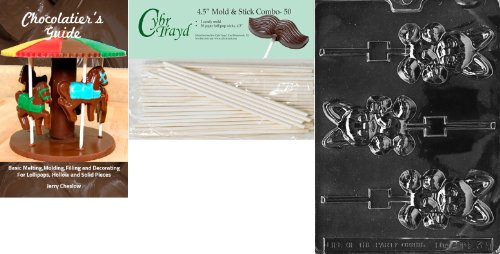 Cybrtrayd 45St50Bk-E039 'Cute Bunny Lolly' Easter Chocolate Candy Mold with 50 4.5-Inch Lollipop Sticks and Chocolatier's Guide