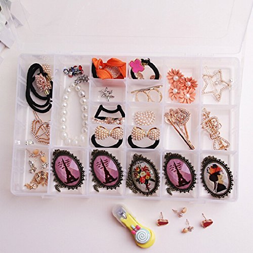 IFY 24 Grid Clear Adjustable Jewelry Bead Organizer Box Storage Container Case
