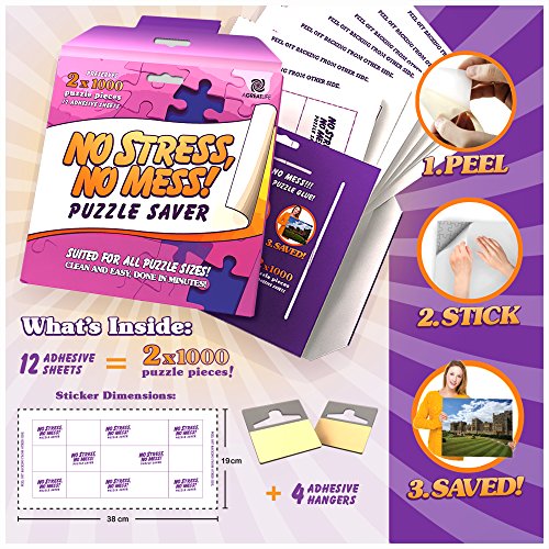 -. Binding : Toy -. Brand : aGreatLife -. EAN : 0646437781824 -. Feature : CREATE A PERMANENT PICTURE PRESENTATION: The super-adhesive sticker keeps the pieces intact forever. / HANGERS WORK WONDERS: Our sealer can keep your masterpiece in perfect position for as long as you need. / STRIP IN A SNAP: The adhesives come off very easy without ever coming apart or curling. / INCLUDES 12 SHEETS TO SUPPORT LARGER PUZZLES: Now you can preserve your 2,000-piece work of art. / GUARANTEED FOR LIFE: Not working as expected? Return it for a prompt refund or replacement. Need to make sure your work remains pristine for life? Order this awesome keeper today! -. IsAdultProduct : 0 -. Label : aGreatLife -. Manufacturer : aGreatLife -. MPN : 646437781824 -. PackageQuantity : 1 -. PartNumber : 646437781824 -. ProductGroup : Toy -. ProductTypeName : TOYS_AND_GAMES -. Publisher : aGreatLife -. Studio : aGreatLife -. Title : 12-Sheet Peel & Stick Puzzle Saver: Preserve and Hang Your Jigsaw Masterpiece Without Hassle - Easily Frame Most Boards With a Strong Adhesive That Lasts -. UPC : 646437781824