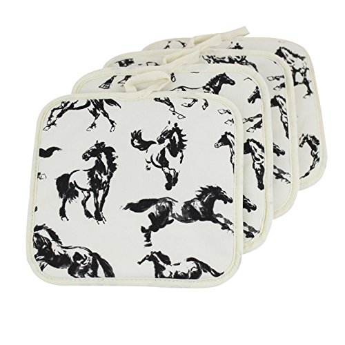 4-Piece Thick Heat Resistant Potholder - 100% Cotton fabric, 7.5 by 7.5 Inch (Mustang)