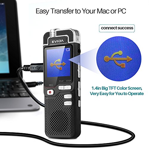 - Dynamic Noise Reduction and Easy Transfer- 3 level denoise function to reduce environmental noise get clearer voice with this quality voice recorder.Works on Windows and Mac.More with Mp3 player,AGC,A-B repeat,T-mark,smart battery detection and button lock ect. Record your idea, Record your lovely life; 1 Year Warranty - BUY from EVIDA with confidence. 100% money back guaranteed if you are not satisfied with the purchase.