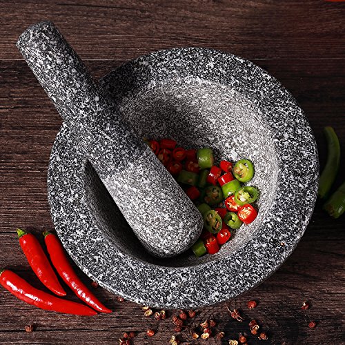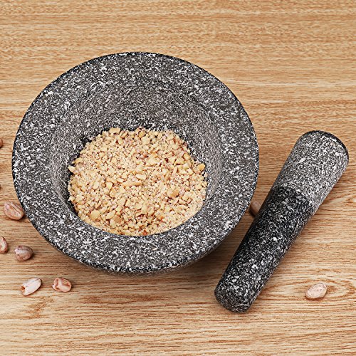 Package Content: - 1x Granite Mortar and Pestle Set - Solid Granite Stone Grinder Bowl Holder 6.4 Inch For Guacamole, Herbs, Spices, Garlic, Kitchen, Cooking, Medicine