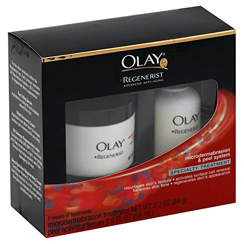 -. Binding : Misc. -. Brand : Olay -. EAN : 0678213680212 -. Feature : Olay Regenerist Microdermabrasion and Peel System two steps that actively work together to give you a combination of a microdermabrasion and mini peel treatment. / Gently resurfaces skin's texture / Diminishes the appearance of fine lines and wrinkles / 2.2 oz. microdermabrasion treatment with derma-crystals 2 oz. peel activator serum with lactic acid / Conditions skin to leave it feeling soft and smooth -. Label : Olay® -. Manufacturer : Olay® -. MPN : 2369 -. PackageQuantity : 1 -. PartNumber : 2369 -. ProductGroup : Beauty -. ProductTypeName : BEAUTY -. Publisher : Olay® -. Studio : Olay® -. Title : Olay® Regenerist Microdermabrasion and Peel System -. UPC : 678213680212