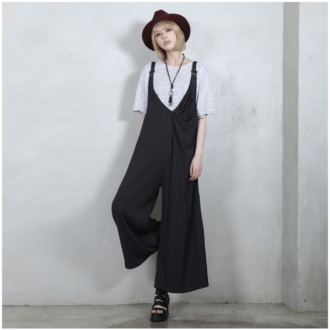 商品名:サロペット レディース ストライプ 個性的 春 2018 モード系 個性的 40代 ファッション