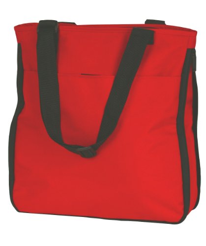 DALIX 16" Zippered Expandable Shopping Tote Bag in Red-2 PACK
