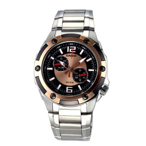 -. Title : Casio Men's MTP1326D-1A2V Silver Stainless-Steel Quartz Watch with Black Dial