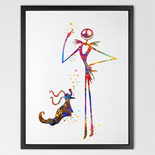 Dignovel Studios 8X10 Jack Skellington and Zero The Nightmare Before Christmas Inspired Watercolor Halloween Wall Artwork Print N402