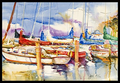 Caroline's Treasures End Stall Sailboats Indoor or Outdoor Mat, 18" x 27", Multicolor