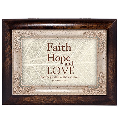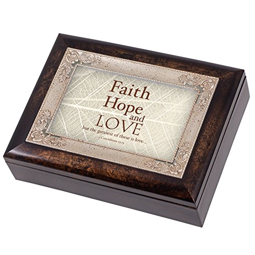 Faith Hope Love 1 Corinthians 13:13 Leaves Italian Design Jewelry Music Box Plays Amazing Grace