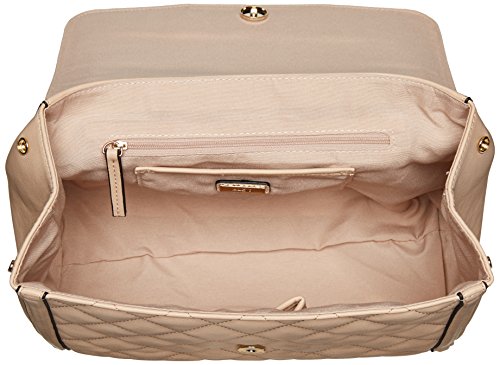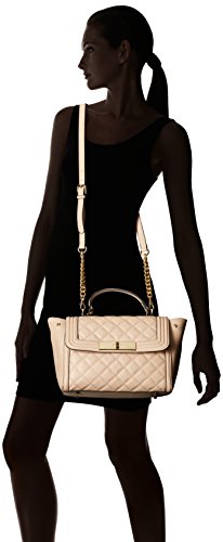 Quilted top handle with turn lock detail on flap and metal bar detailing.
