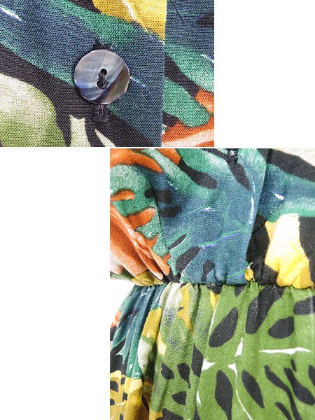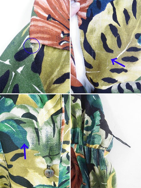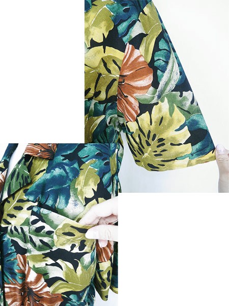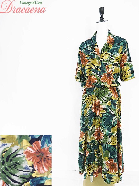 Ladies ブランド- カラー緑・カーキ・茶・黒 メール便不可 コンディション★★★ 素材レーヨン 表記サイズ12 スタッフコメント胸付近、全体に糸引きダメージあり。左襟、小さい破れあり。ウェストベルト通し紐あり(付属品なし) 実寸サイズ 着丈 122 cm 身幅 52 cm 肩幅 43 cm 袖丈 27 cm ウエスト 62cm 〜 82cm (24インチ〜32インチ) ※ウエスト・ヒップ以外は平置き採寸